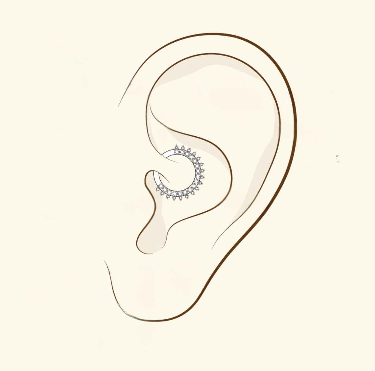 20 eurosPiercing placé sur le petit cartilage arrondi qui protège l’entrée du conduit auditif externe.